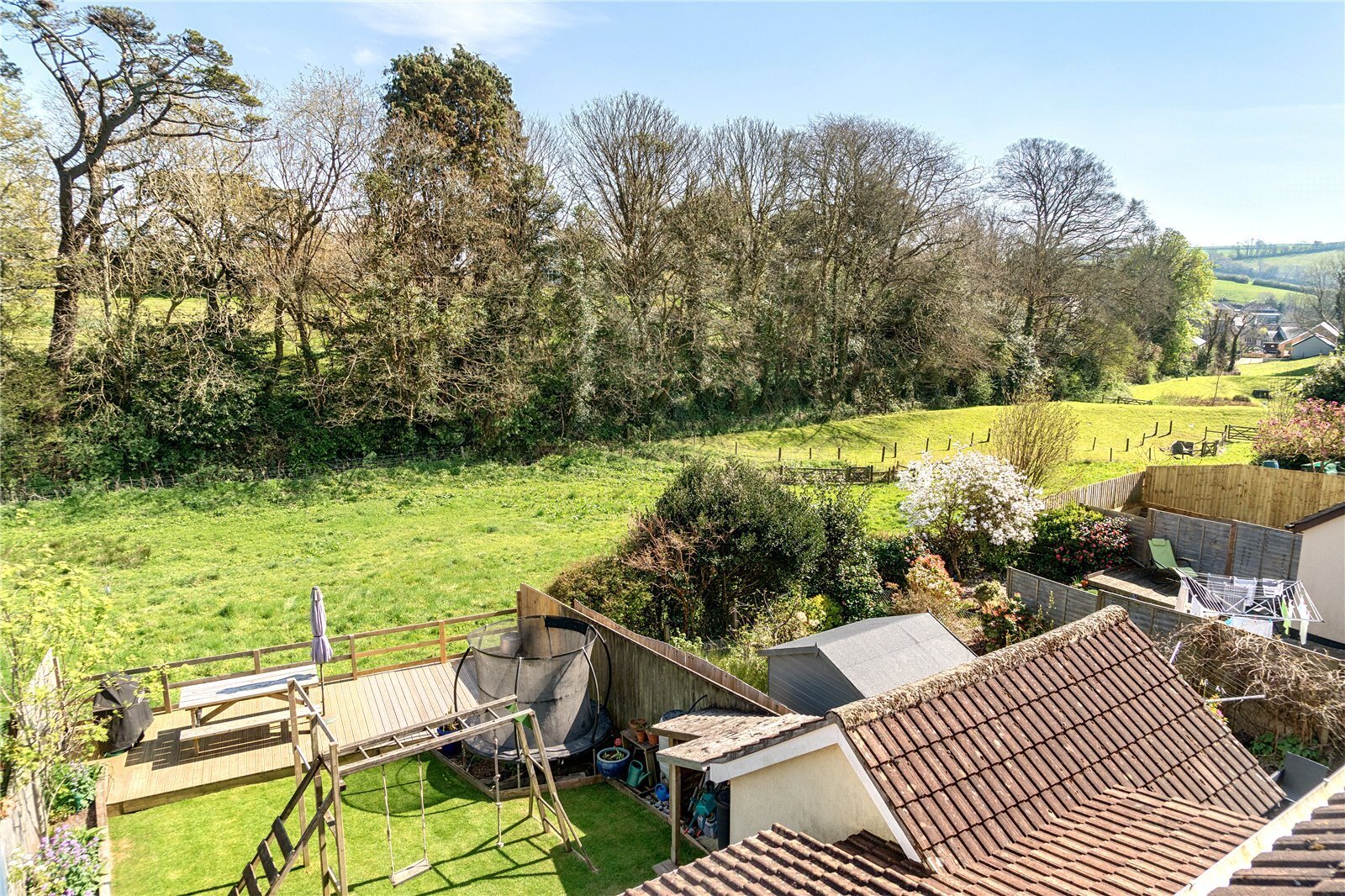 rear garden is beautifully landscaped for families, with extensive decking, perfect for