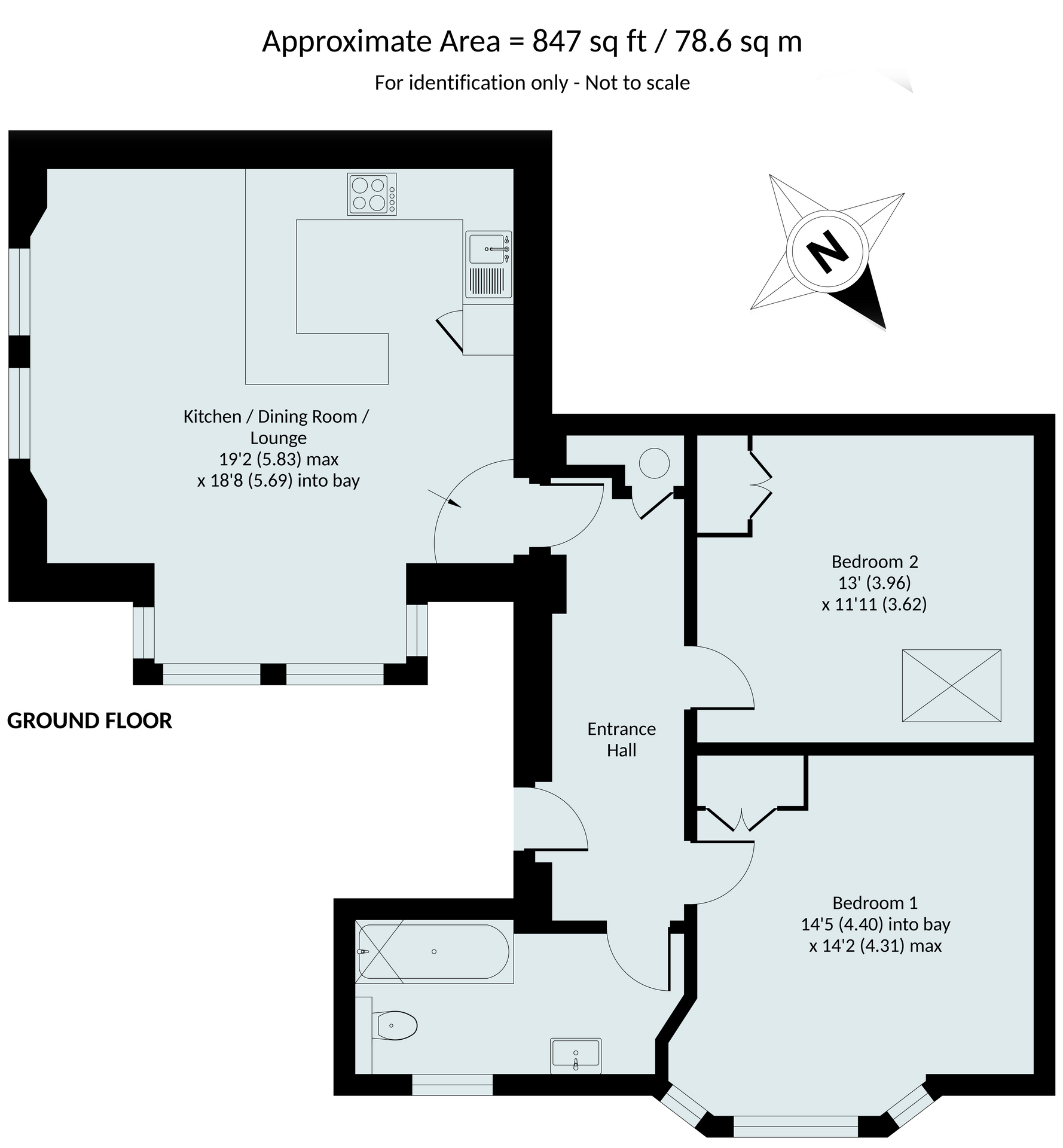 The principal bedroom is generously sized with a charming bay window, while the second bedroom is bright with a fitted cupboard. The bathroom is newly appointed with a modern suite and stylish finishes, and the entrance hall provides a warm welcome with useful storage.