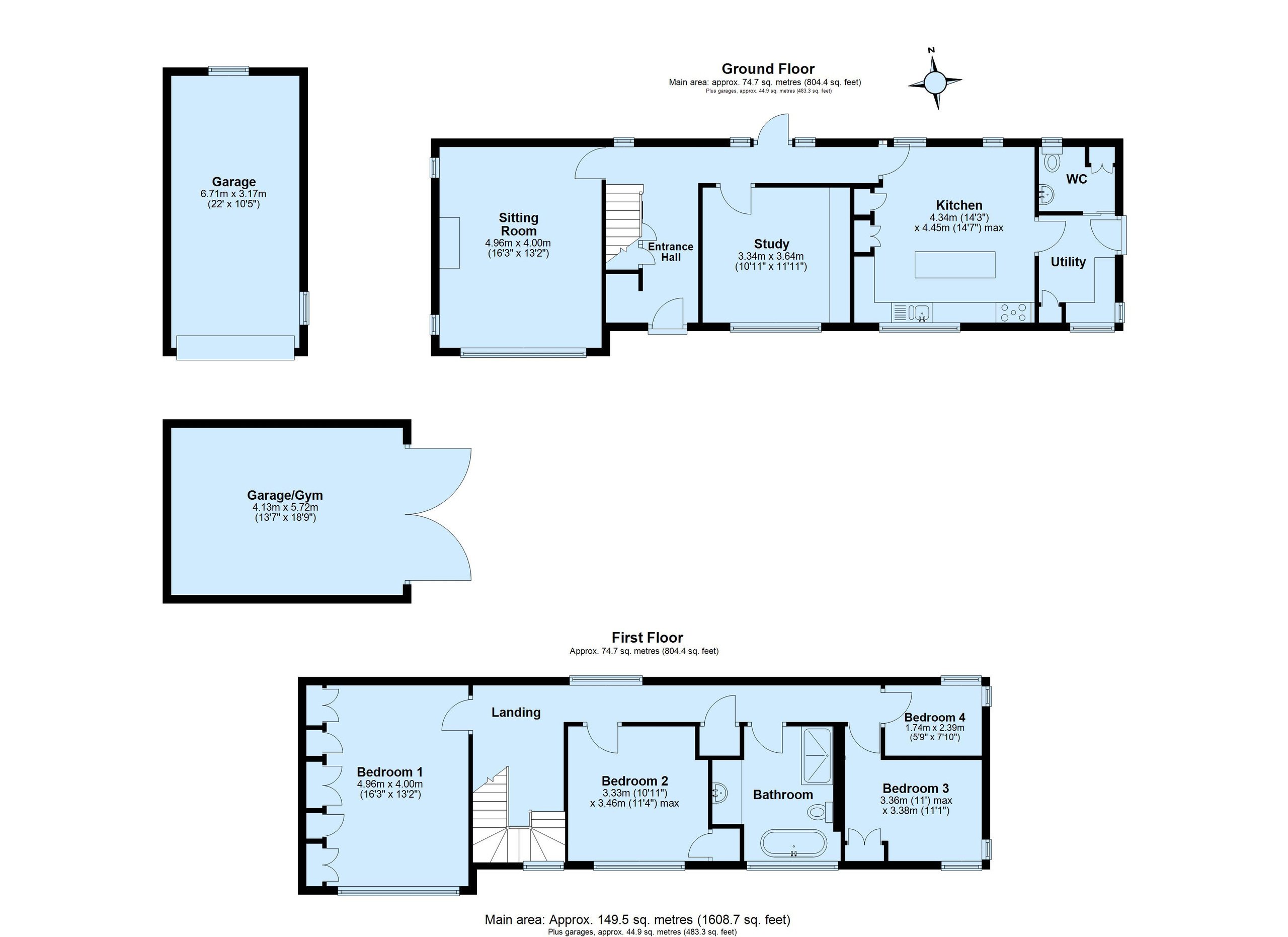 The accommodation comprises entrance hall with stairs to the first floor, study, contemporary kitchen with central island, and plenty of fitted units with integrated appliances. Off the kitchen is a useful utility with access out to the side of the property and a cloakroom. Completing the ground floor is the dual aspect sitting room with a log burner.