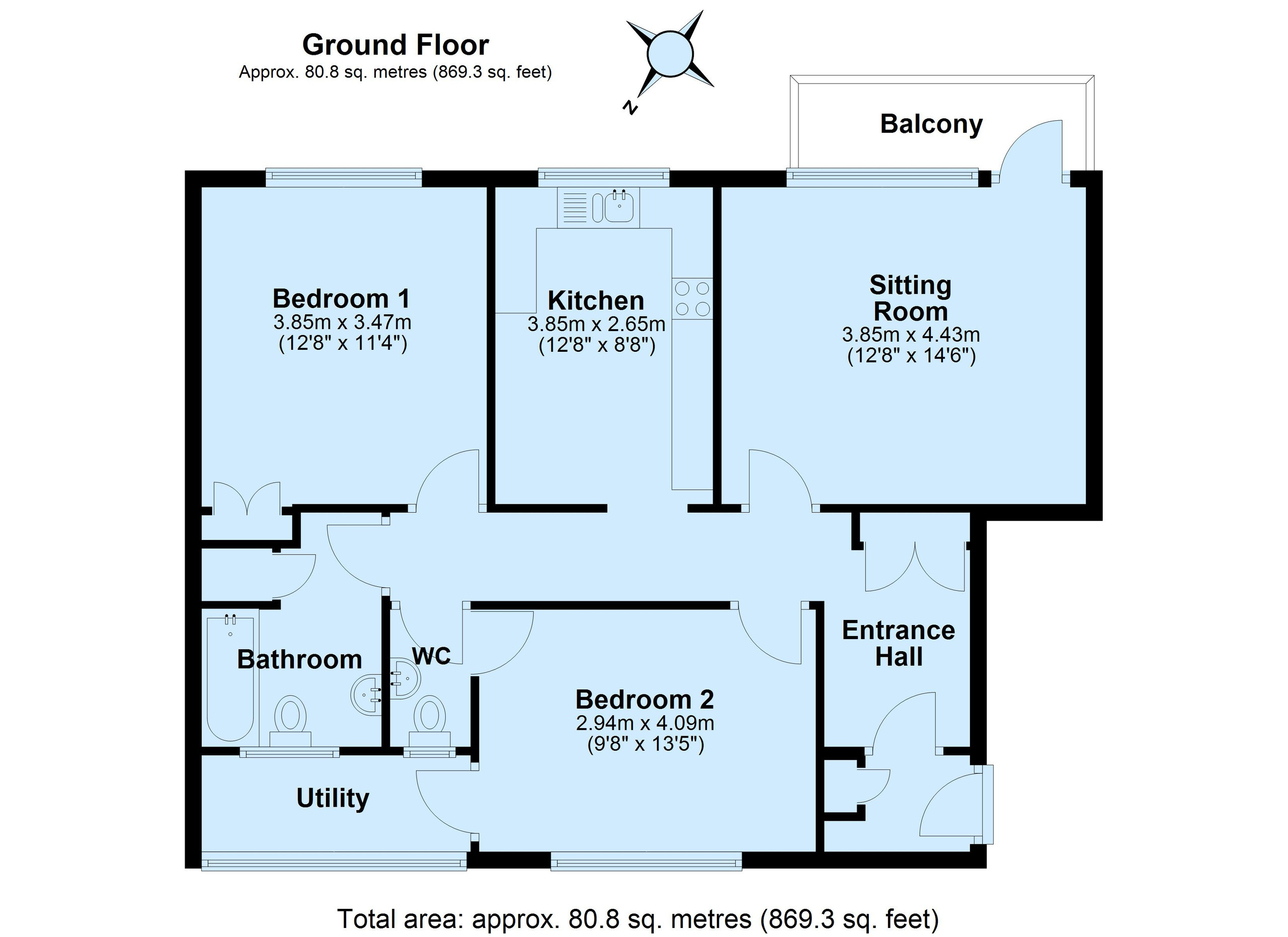 There are two double bedrooms, a family bathroom, and a separate WC, providing comfortable and flexible living space for residents or guests.