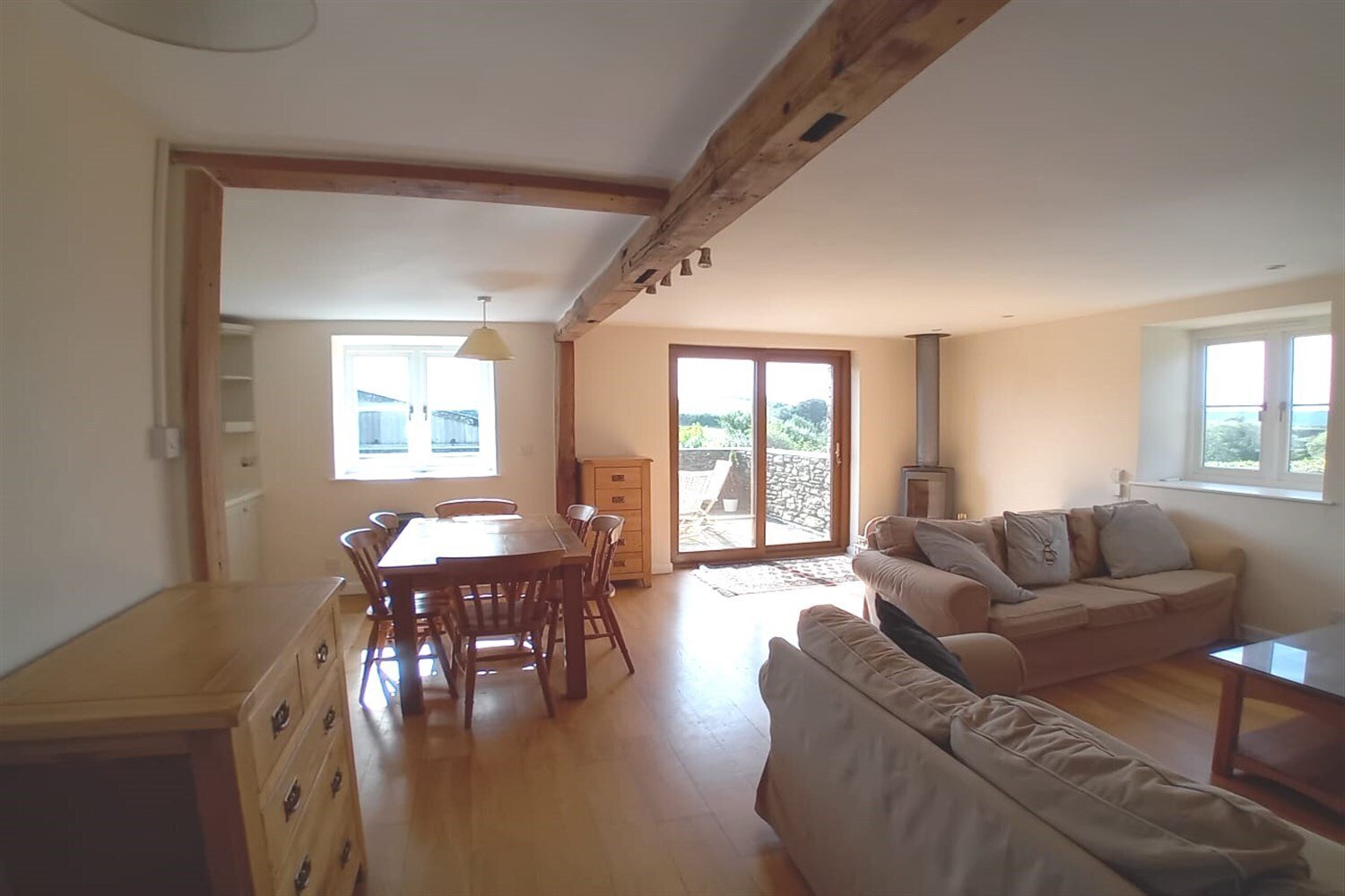 Detached 2 double bedroom, 2 bathroom barn conversion on a farm with rural views. Open plan living space with wood burner, wood flooring and private decking area. Garden with driveway parking. EPC D.